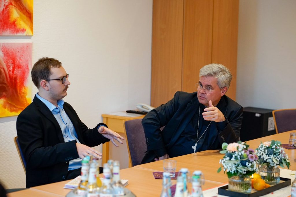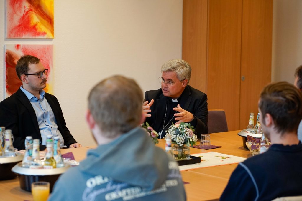 In den Gesprächen mit Erzbischof Dr. Udo Markus Bentz und den Generalvikaren thematisierten wir die täglichen Herausforderungen, denen wir in der pädagogischen Arbeit mit unseren Jugendlichen und jungen Erwachsenen begegnen. Martin Konz hob hervor, dass wir es häufig mit schwierigen Macht- und Ohnmachtsverhältnissen zu tun haben, die die Lebensrealität vieler unserer Jugendlichen prägen.